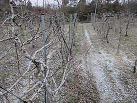 2月初旬、小雪の舞う中、リンゴの木の剪定作業